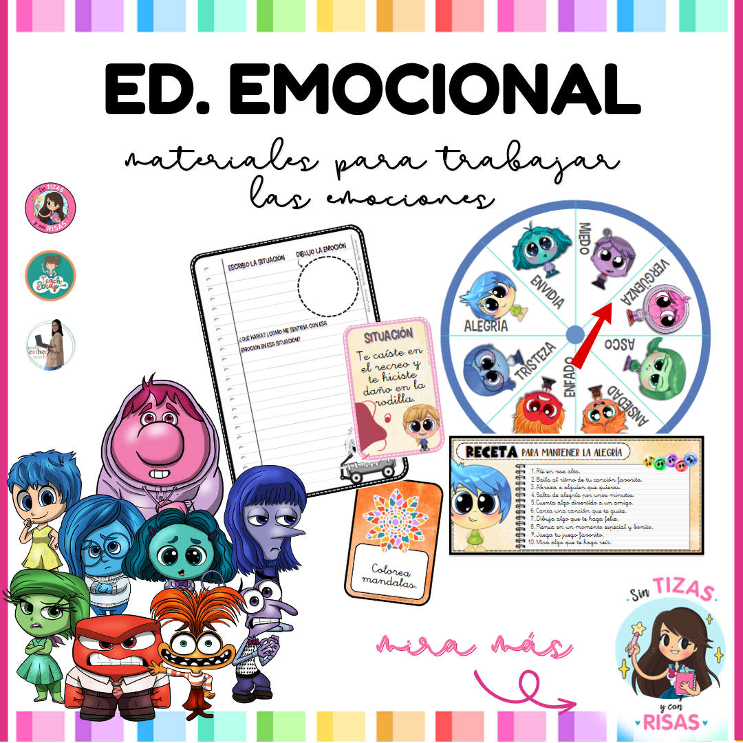 Incluye: materiales manipulativos, juegos, recetario de emociones, rincón de la calma, cartelería, dibujos para colorear… |